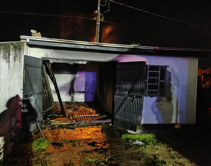 Um incêndio mobilizou os Bombeiros Voluntários no Centro de Jaguaruna, nesta terça. Quando a guarnição chegou na casa, se deparou com a garagem tomada pelas chamas. No local também ficava a lavanderia.