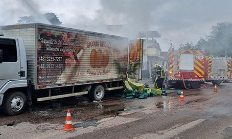 Um caminhão baú carregado com badejas de ovos pegou fogo na manhã desta segunda-feira, em Tubarão. A ocorrência mobilizou o Corpo de Bombeiros por volta das 11h15, no bairro Bom Pastor.