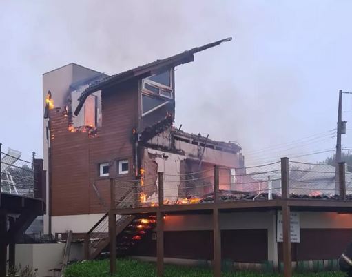 Uma casa na praia de Ipuã, em Laguna, ficou completamente destruída após um incêndio. A residência pertencia a um empresário de Criciúma. Não houve feridos.