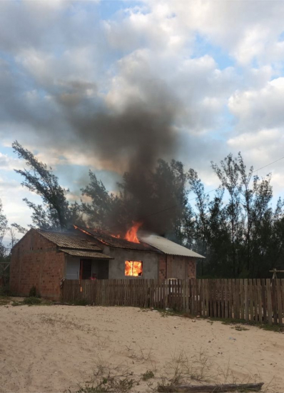 Um incêndio em uma casa de Jaguaruna mobilizou os Bombeiros Voluntários. A ocorrência foi registrada na estrada geral do Balneário Figueirinha.