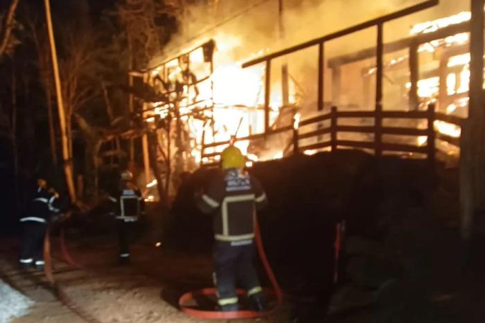 Duas edificações de madeira foram destruídas por um incêndio na madrugada de ontem, em Garopaba. A ocorrência, que foi registrada na estrada geral da Encantada, foi combatida pelo Corpo de Bombeiros, por volta das 00h30. Ninguém ficou ferido no local.