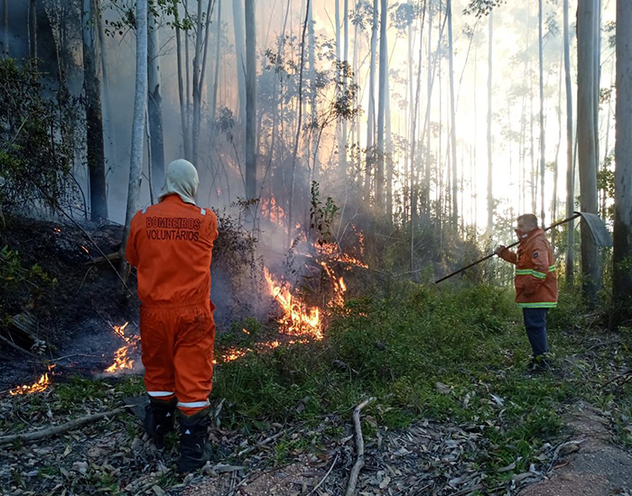 Bombeiros enfrentaram terreno de difícil acesso para conter as chamas.