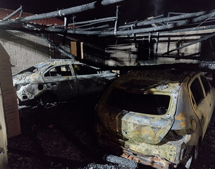 No espaço estavam dois carros e uma motocicleta que foram destruídos pelo fogo. Foi realizada a extinção completa das chamas e o rescaldo com o uso de 6.300 litros de água. Os bombeiros também conseguiram preservar a residência que fica ao lado da garagem.