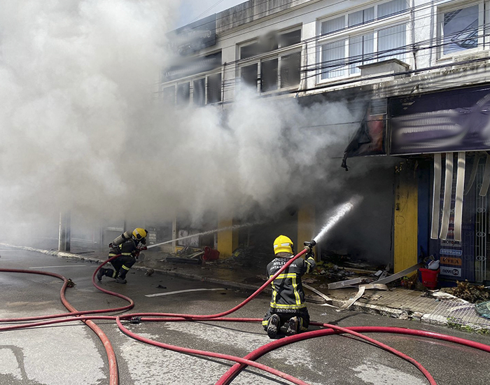Um incêndio de grandes proporções atingiu uma loja no centro de Imbituba, ontem pela manhã.