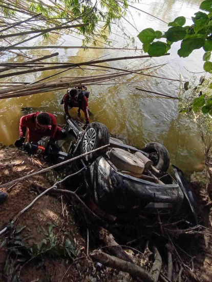 De acordo com os bombeiros, no local foi realizada a estabilização do veículo e feito mergulho nas laterais do carro para encontrar possíveis acessos.