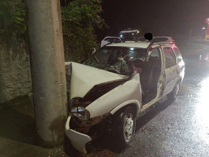 No local, os bombeiros constataram que se tratava de uma colisão contra poste envolvendo um veículo GM. A condutora, uma jovem de 21 anos, permanecia no interior do automóvel, sentada no banco do motorista e em estado estável.