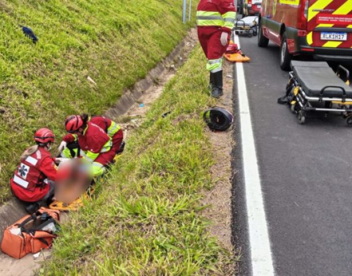 Com o impacto, o motociclista e a passageira foram arremessados e caíram em uma valeta no canteiro central, o que dificultou o resgate. O condutor, de 22 anos, sofreu uma laceração com exposição óssea e foi encaminhado ao Hospital de Tubarão. Já a jovem de 18 anos teve suspeita de fratura e também precisou de atendimento médico.