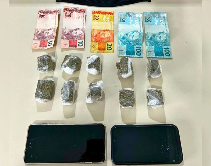 Com eles, a PM apreendeu 250 gramas de maconha e R$ 240 em dinheiro. A dupla, de 18 e 19 anos, foi presa e encaminhada para a Delegacia de Polícia Civil.