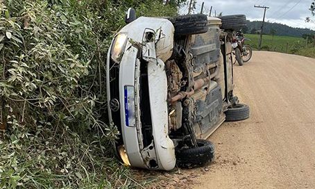 “A vítima relatou que viu uma conhecida e, então, pulou do carro e foi correndo em direção a ela, pedindo socorro e informando que estava sendo roubada. Neste momento, o criminoso fez a volta no veículo para fugir, porém, capotou o automóvel e fugiu no mato, a pé”, informou a PM.
