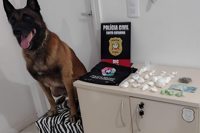 O local foi alvo do cumprimento de um mandado de busca e apreensão, executado pela Delegacia de Investigação Criminal (DIC) de Laguna, com apoio da PM e do Canil. Durante as diligências, os policiais apreenderam uma quantidade significativa de cocaína.