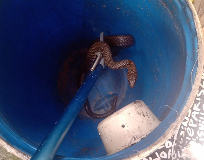 Uma família de Jaguaruna levou um susto na manhã desta terça-feira. Eles encontraram uma cobra embaixo de um móvel na lavanderia de casa. A residência fica no Centro do município, na rua Leandro Alano Anselmo.