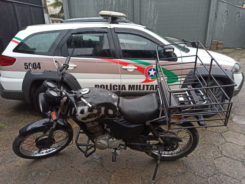 Uma motocicleta de entrega de gás, roubada semana passada no bairro Pouso Alto, em Gravatal, foi recuperada pela Polícia Militar em Tubarão. O veículo foi encontrado no bairro São Martinho, nessa terça-feira, desmontado e pintado de outra cor.