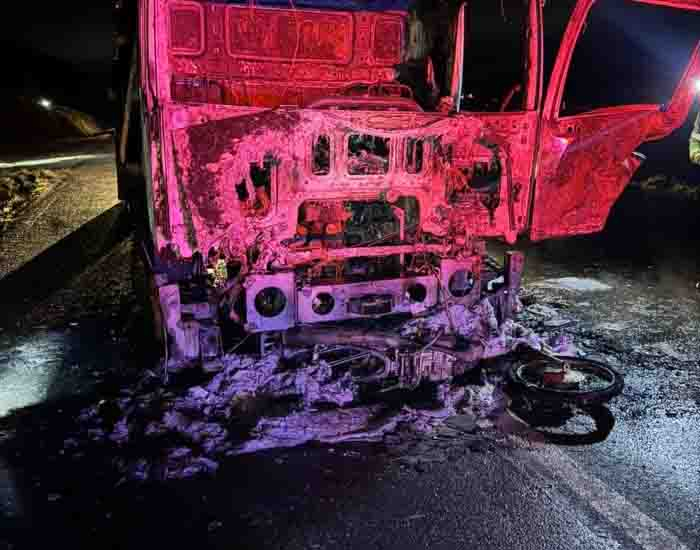 Os motoristas do caminhão e do carro saíram ilesos. Com o impacto, o veículo pegou fogo e o motociclista morreu no local.