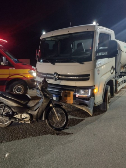 Uma motociclista ficou gravemente ferida após colidir contra um caminhão em Orleans. O acidente aconteceu na noite desta quarta-feira, dia 17, por volta das 18h30, no bairro Orlando Bússulo, em Orleans.