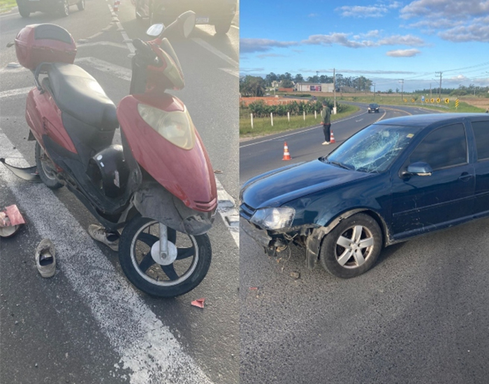 Uma colisão entre uma motocicleta e um automóvel foi registrada na última sexta-feira, na SC-100, na localidade de Morro Bonito, em Jaguaruna.