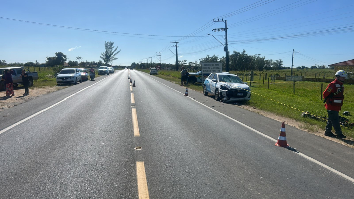 O acidente aconteceu no km 32,350 da rodovia e envolveu um automóvel da secretaria de Saúde de Jaguaruna e uma motocicleta.