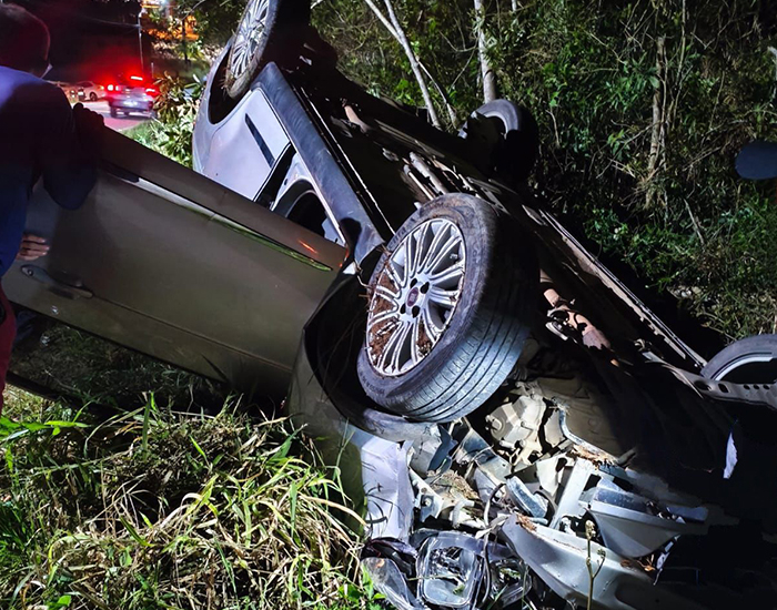 De acordo com o Corpo de Bombeiros Voluntários de Jaguaruna, o condutor perdeu o controle do Fiat Gran Siena, saiu da pista e, em seguida, o veículo capotou.