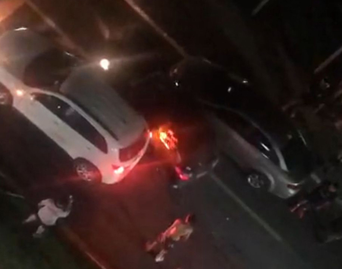 O vídeo gravado por um morador registrou o momento em que o carro do suspeito avança propositalmente, colidindo na traseira de outro veículo. Depois, o motorista sai em alta velocidade pela avenida.