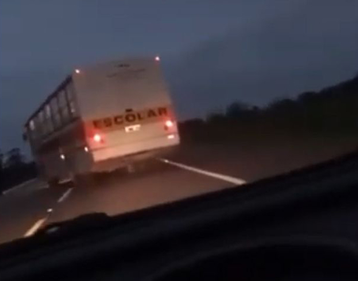 Um ônibus escolar foi flagrado trafegando em zigue-zague no fim da última semana, em Sangão. Após a repercussão do caso nas redes sociais, a motorista foi afastada pela prefeitura do município.