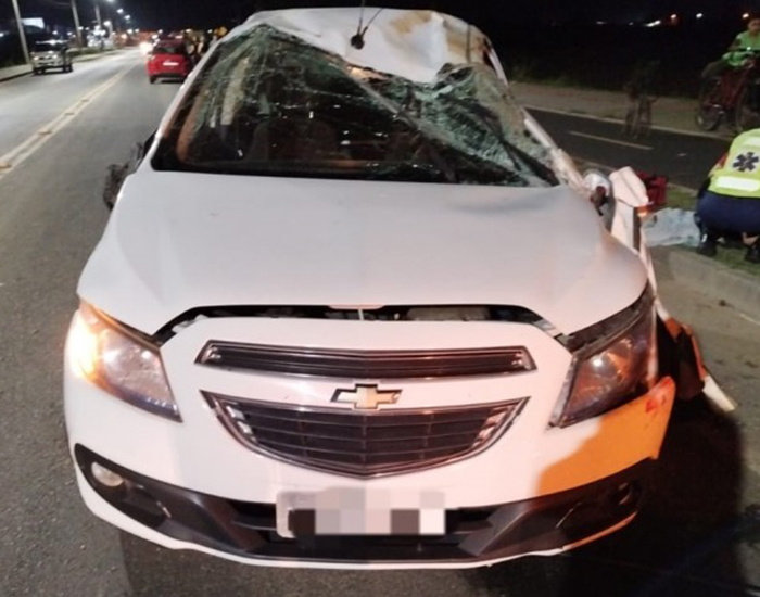 O motorista de um Chevrolet Onix foi arremessado para fora do carro após capotar o veículo na SC-443, em Sangão. Um segundo automóvel também se envolveu na ocorrência registrada na noite deste domingo, no Centro do município.