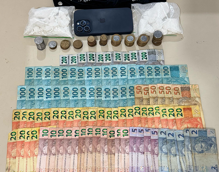 Durante a abordagem, dentro do carro, foram encontrados 250 gramas de cocaína, cerca de R$ 6 mil em dinheiro e um celular. O motorista afirmou que faria entregas na cidade e que já havia realizado esse tipo de transporte anteriormente.
