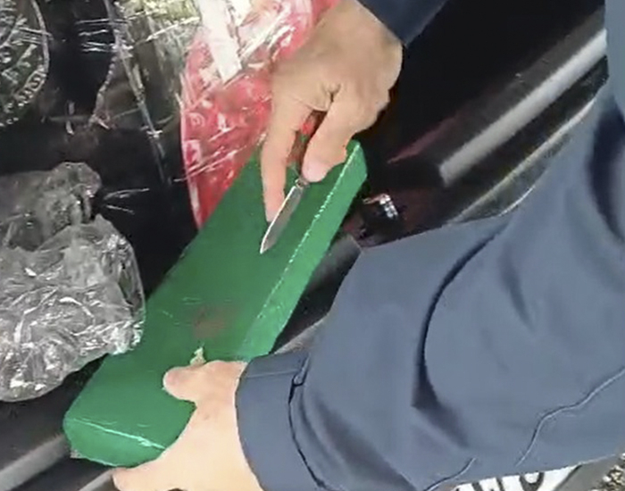 Na busca, os agentes localizaram dois pacotes da droga sob o banco do passageiro, onde também havia um facão escondido. No porta-malas, uma caixa de papelão guardava mais porções de maconha prontas para distribuição.
