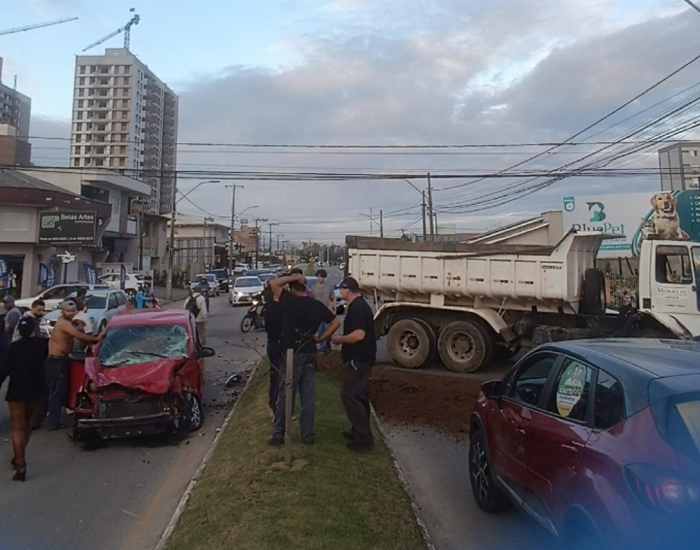 Um acidente deixou uma motorista em estado grave. A colisão ocorreu na avenida Pedro Zapelini, no bairro Santo Antônio de Pádua, em Tubarão.