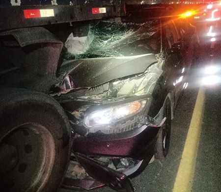 Um acidente na BR-101, em Sangão, deixou um jovem de 21 anos ferido. A vítima conduzia um Honda Civic, que colidiu contra uma carreta.