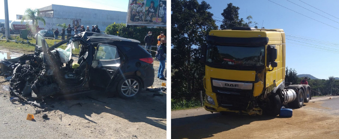 O acidente, por volta das 7h, foi na chamada “curva da Encantada”, no bairro Areias de Palhocinha. O condutor do carro, de 37 anos, não resistiu aos ferimentos e morreu no local da batida. O motorista do caminhão não ficou ferido.
