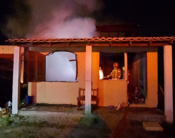 Enquanto isso, moradores informaram que o suspeito havia colocado fogo na residência do casal. Os Bombeiros Voluntários de Jaguaruna foram acionados e conseguiram controlar o incêndio, mas o imóvel, construído em alvenaria, ficou completamente destruído.