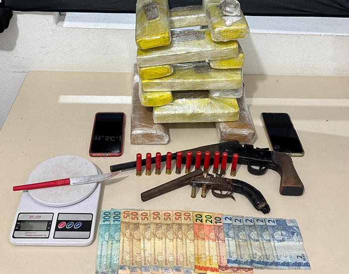 A polícia também constatou que o apartamento onde a suspeita estava antes da fuga era usado para o tráfico de drogas. Foram apreendidos no local mais de oito quilos de maconha, cocaína, balança de precisão, duas espingardas de fabricação caseira e munições. Além das drogas e armamentos, foram apreendidos ainda dois celulares, um cartão bancário, R$ 630 em dinheiro e materiais utilizados para embalar entorpecentes.
