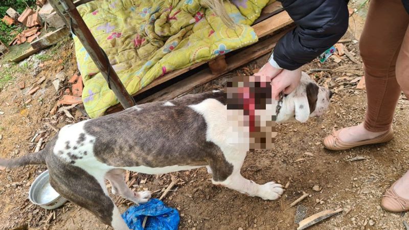 No local, o cachorro estava com uma corrente em volta do pescoço, presa com um cadeado. A veterinária que acompanhou a diligência atestou a insalubridade do local, bem como a seriedade dos ferimentos. O pescoço do animal estava em carne viva.