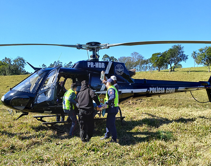 Diante da situação, o Serviço Aeromédico foi acionado para realizar a transferência da paciente. Após ser estabilizada no local, ela foi levada de helicóptero ao Hospital Nossa Senhora da Conceição (HNSC), em Tubarão.