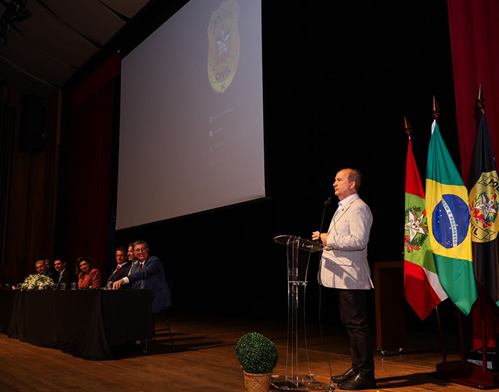 O governador Jorginho Mello autorizou um novo concurso público para 300 agentes da Polícia Civil ontem, durante a formatura da primeira turma do curso de formação inicial de 43 delegados, 15 psicólogos e uma escrivã, em Florianópolis.