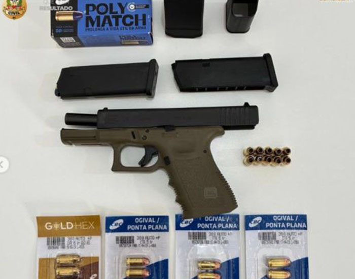 Durante o cumprimento das ordens judiciais, os agentes prenderam um homem em flagrante por porte ilegal de arma de fogo. Ele estava com uma pistola Glock calibre .380. Em outro endereço, os policiais localizaram uma espingarda e diversas munições de diferentes calibres, que foram apreendidas e encaminhadas para a delegacia.