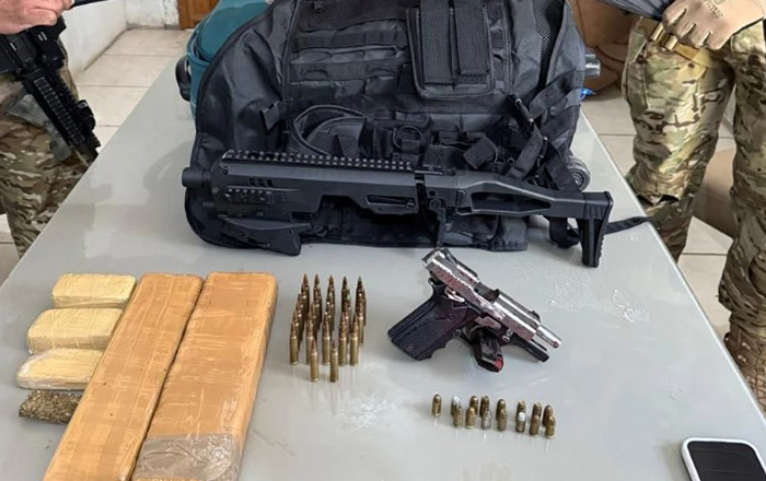Durante a ação, os policiais apreenderam ainda uma pistola calibre 380 com numeração suprimida, 15 munições calibre 380, 32 munições de fuzil 5,56x45mm, um kit Roni (acessório que proporciona mais estabilidade no disparo), uma capa de colete balístico e cerca de dois quilos de maconha.