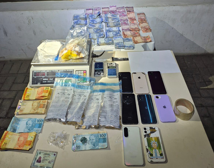 Na sequência, os policiais abordaram um jovem de 19 anos, um de 20 e uma mulher de 18, apontados como responsáveis pela venda direta dos entorpecentes. Também foi presa uma mulher de 28 anos, suspeita de coordenar a atividade criminosa, incluindo o armazenamento e fracionamento das drogas. Em buscas na residência utilizada pelo grupo, foram encontrados aproximadamente 485 gramas de cocaína, 380 gramas de crack, R$ 5.049 em cédulas e R$ 130,85 em moedas. Todos receberam voz de prisão e foram encaminhados à delegacia.