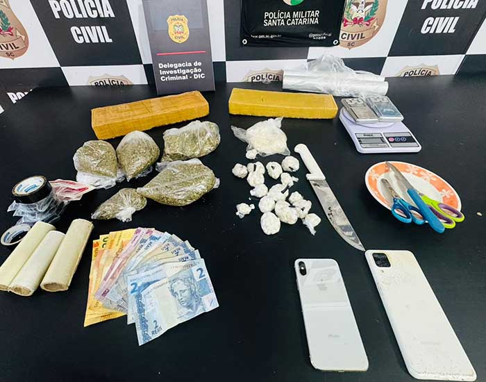 Uma operação conjunta da Polícia Civil e da Polícia Militar prendeu dois homens e apreendeu cerca de 2,5 quilos de drogas em Tubarão, na manhã de ontem.