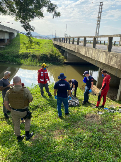 O corpo de um homem foi encontrado boiando embaixo de uma ponte da BR-101, em Treze de Maio, na tarde deste sábado (15).