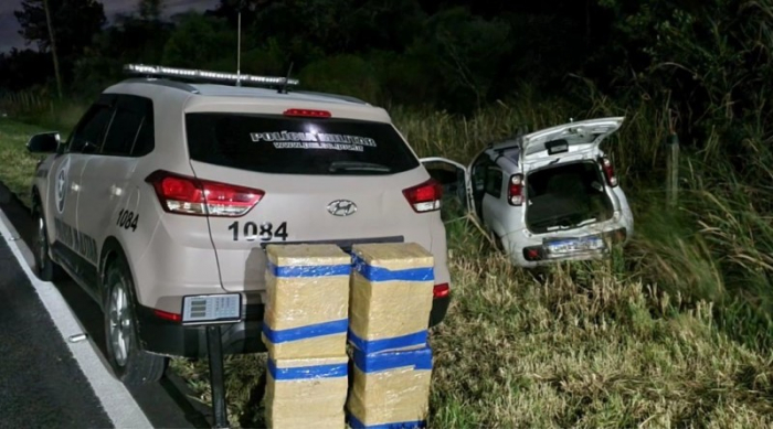 Segundo a PM, com informações de que um veículo estava transportando drogas pela BR-101, a guarnição parou na rodovia para averiguar a situação. Ao passar pela viatura, o motorista percebeu a presença dos policiais e iniciou uma fuga em alta velocidade com manobras perigosas em curvas e acelerações bruscas.