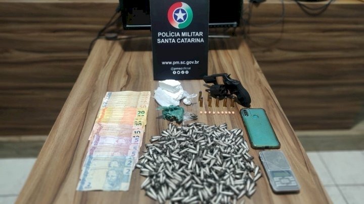 Ao todo, foram apreendidos 481 pinos de cocaína, 148 gramas de cocaína não fracionada, 17 gramas de maconha, nove comprimidos de ecstasy, balança de precisão, mais de R$ 1,8 mil em espécie, o revólver e sete munições.
