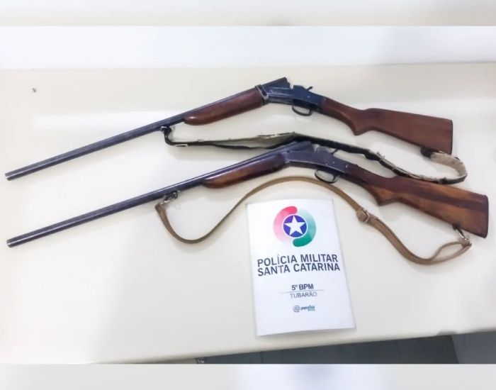 Na residência do suspeito, na SC-443, a polícia apreendeu duas espingardas. O morador informou que as armas eram de seus pais, mas não possuía documentos que comprovassem a informação.