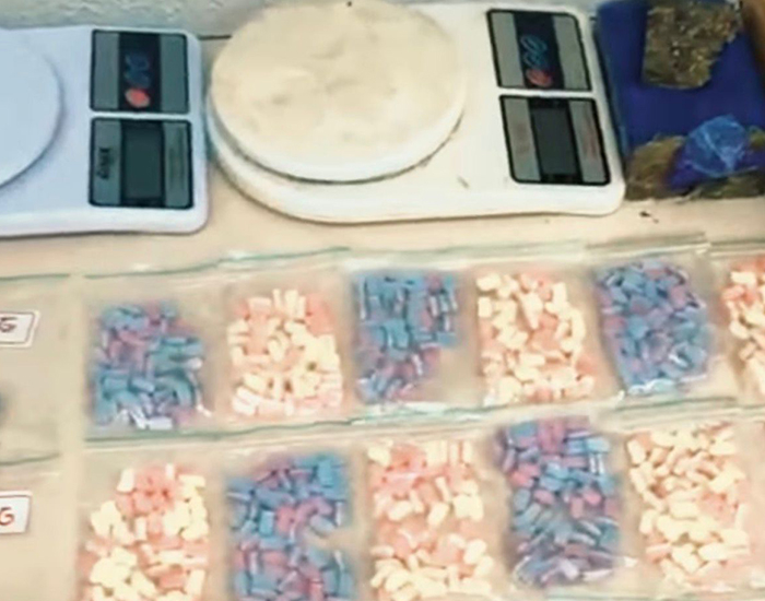 No local, foram apreendidos 836 comprimidos de ecstasy, cerca de 3,2 quilos de maconha, 18 gramas de haxixe, sete munições de revólver calibre .38, além de balanças de precisão e um equipamento utilizado para embalar drogas a vácuo.