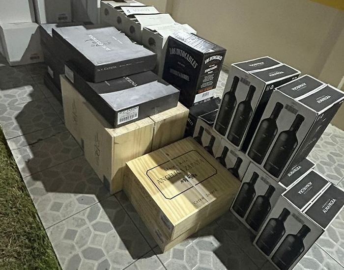 Na busca pessoal, nada foi localizado com os passageiros. Já em busca veicular, foram encontradas, no compartimento de carga, 335 garrafas de vinho de diversas marcas, sem os devidos desembaraços aduaneiros.