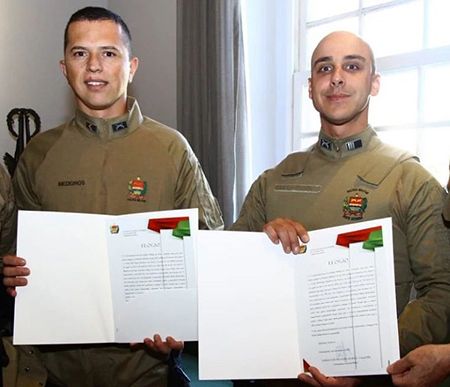 O sargento Francisco e cabo Medeiros, da 2ª Cia de Polícia Militar de Gravatal, receberam uma homenagem do comando-geral da Polícia Militar de Santa Catarina (PMSC), em Florianópolis, “pelos notáveis serviços desenvolvidos em momentos cruciais em que demonstraram notável habilidade e comprometimento, agindo com destemor e determinação para garantir a ordem pública e o bem-estar da nossa comunidade”, informou a PM.