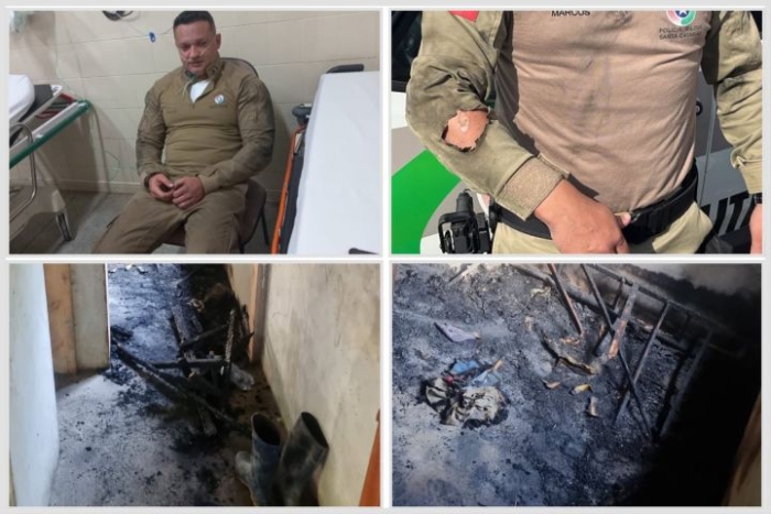 Policiais militares do 34º Batalhão, de Imbituba, arriscaram a própria vida para resgatar um homem de uma casa em chamas na manhã de hoje, em Paulo Lopes. A guarnição foi acionada pelo irmão da vítima, que relatou o incêndio na residência.