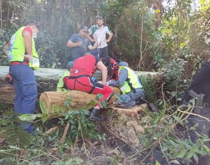 Um homem de 38 anos ficou gravemente ferido após ser atingido por uma árvore de grande porte. O acidente de trabalho ocorreu em uma plantação de eucalipto, em um local de difícil acesso na comunidade de Azeiteiro, em Braço do Norte, nesta quinta-feira.
