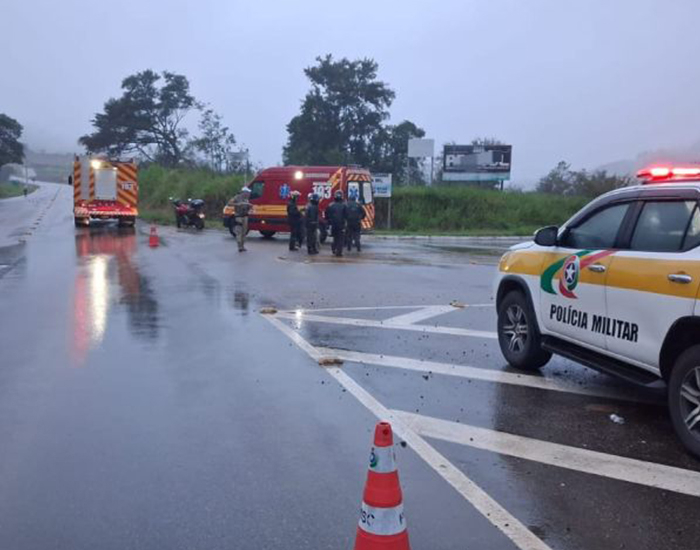 Duas pessoas ficaram feridas após uma queda de motocicleta na SC-390, no bairro Pindotiba, em Orleans, na segunda-feira. Segundo o Corpo de Bombeiros, o condutor da moto, um homem de 59 anos, foi encontrado caminhando pela via, com sinais vitais normais, mas relatando dor na perna direita.