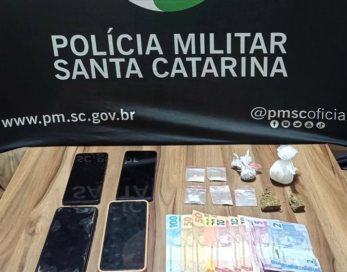 Já na casa, com o traficante, foram encontrados 44 gramas de cocaína, 2,8 gramas de MDMA, quatro comprimidos de ecstasy, 14,4 gramas de maconha, além de quatro aparelhos celulares e R$ 289 em dinheiro.