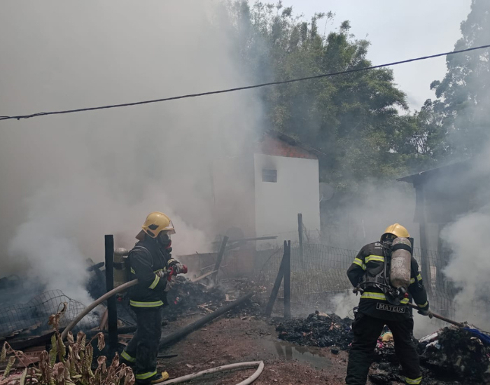 Uma casa ficou completamente destruída após um incêndio na manhã de sábado, no bairro Passagem, em Tubarão. A residência estava vazia no momento do incidente.